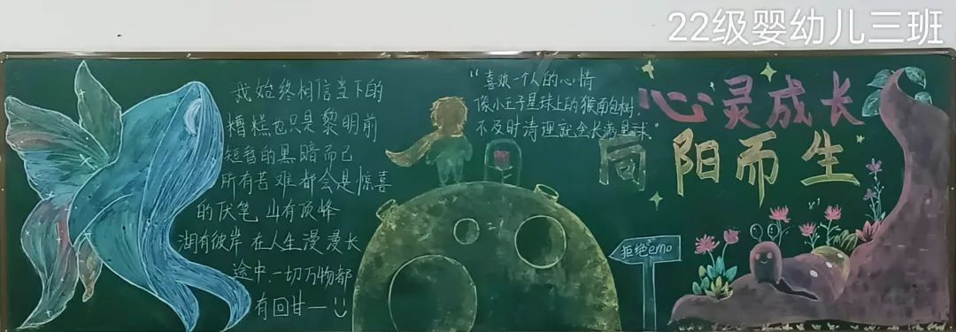 活动中,同学们积极参与、用心准备,大家通过互联网平台,查取相关心理健康资料、黑板报版面样式,紧紧围绕心理健康主题,一起构思、设计、思考、探讨。最终,呈现出一幅幅主题鲜明、内容丰富、阳光健康的黑板报作品。