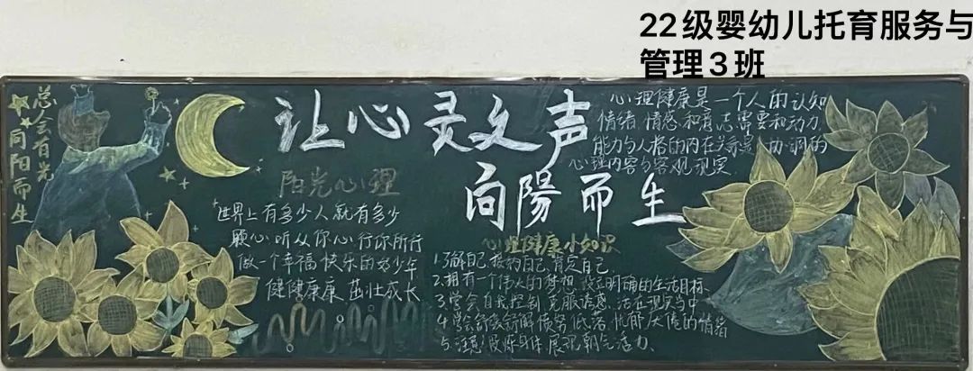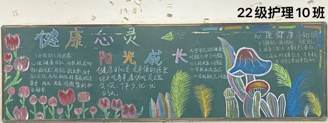 本次心理健康主题黑板报活动,不仅通过视觉上的冲击,传递出心理健康的重要性,引导同学们关注自己的内心世界,提高自我认知和自我调节能力,也增强了团队合作意识和创意表达能力。