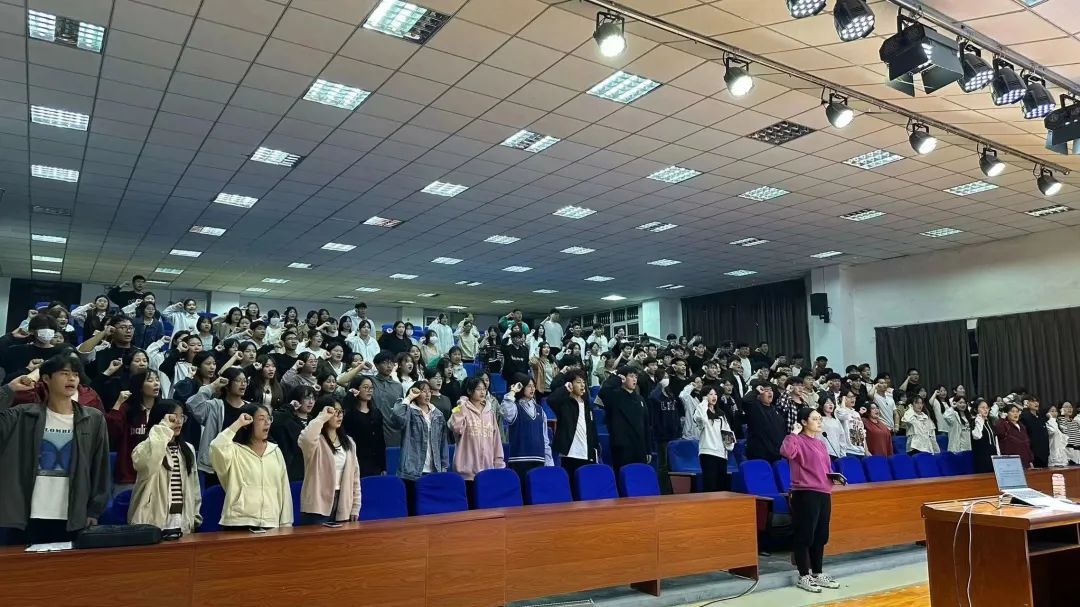通过案例的分析带动心理委员去学会发现身边异常表现的同学,积极关注同学们的心理状态,对容易出现的心理问题给出有效建议,并带领大家一起宣誓,最后强调了心理委员在关爱他人的同时也要关爱自己,实现自助助人,助人自助。