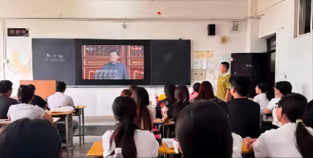9月3日,谈球吧平台app入口组织各班集中观看9.3阅兵仪式。观礼中,师生随镜头见证庄严的仪式、威武的方阵与抗战老兵的风采,深受触动,坚定了铭记历史、奋进报国的信念。