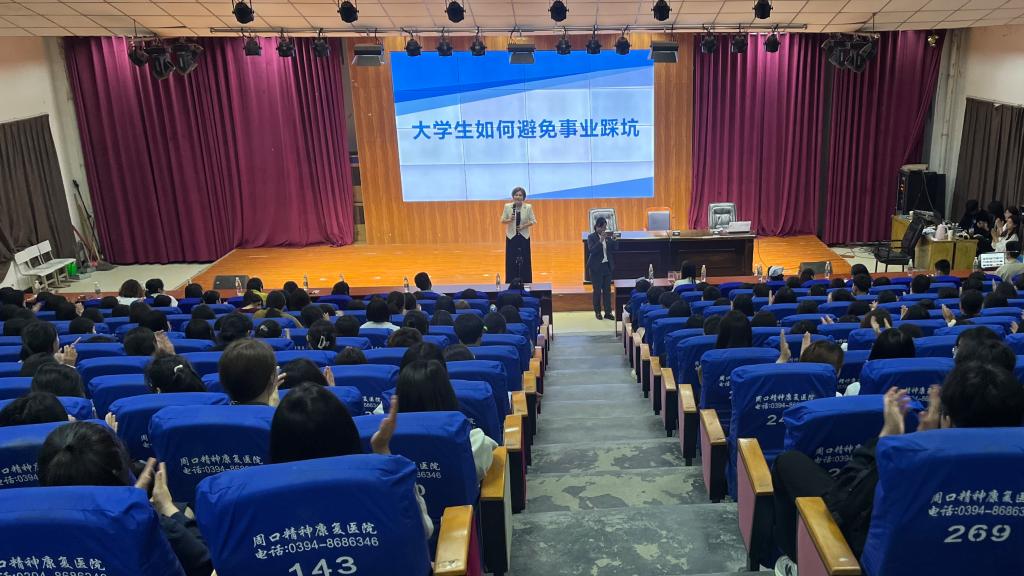 5月24日晚,谈球吧平台app入口,谈球吧平台app入口承办周口市女大学生创业就业校园行活动专题讲座。周口人家餐饮创始人,三川巾帼创业联合会常务会会长何丹,周口市鼎吉文化传媒有限公司董事长,三川巾帼创业联合会执行会长杨娜,谈球吧平台app入口院长付晓东、学管副院长孙晓鹏、教学副院长赵新及谈球吧平台app入口其他领导班子,全体辅导员出席本次讲座,2022级护理7班,8班,9班,10班全体同学参加本次活动。讲座由招生就业处副处长王芳主持。