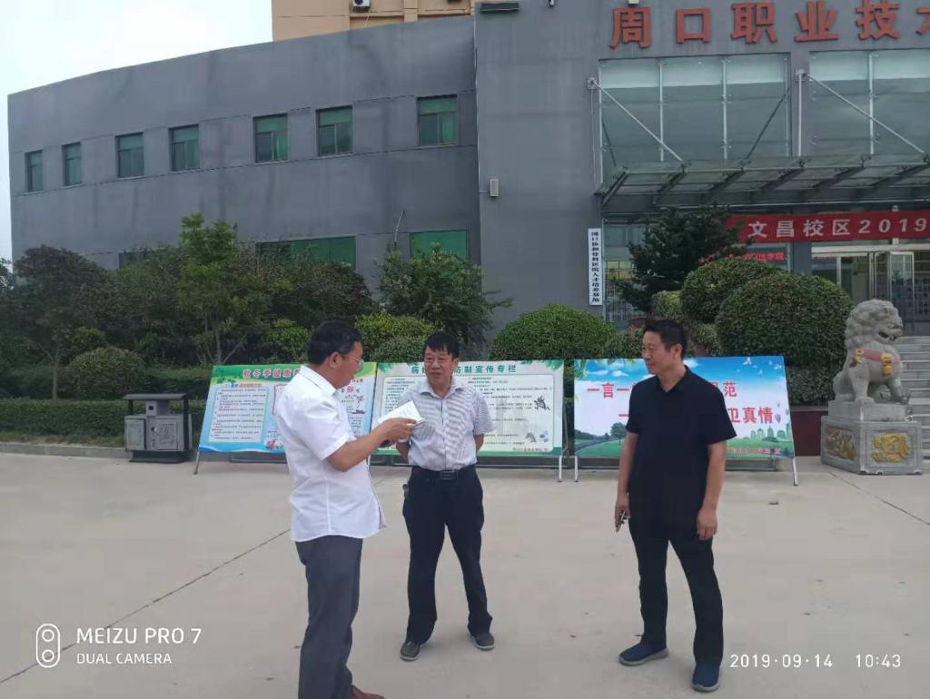 2019年9月14日上午,谈球吧平台app入口副校长黄增福,在后勤处处长王文营等陪同下,到文昌校区检查指导创卫工作。(周护宣)