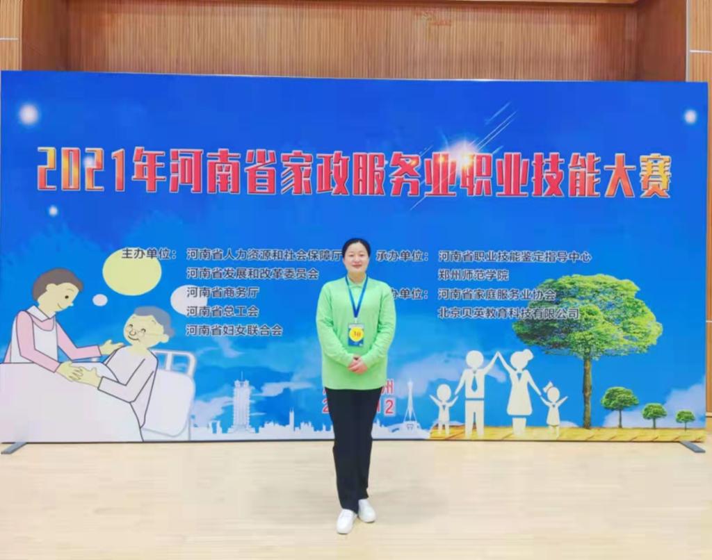 2021年度河南省家政服务业职业技能大赛于12月6日在郑州圆满落幕。谈球吧平台app入口谈球吧平台app入口教师位东丽在赛场不畏强手、顽强拼搏,完美的展示了良好的精神风貌和专业素养,荣获大赛一等奖。