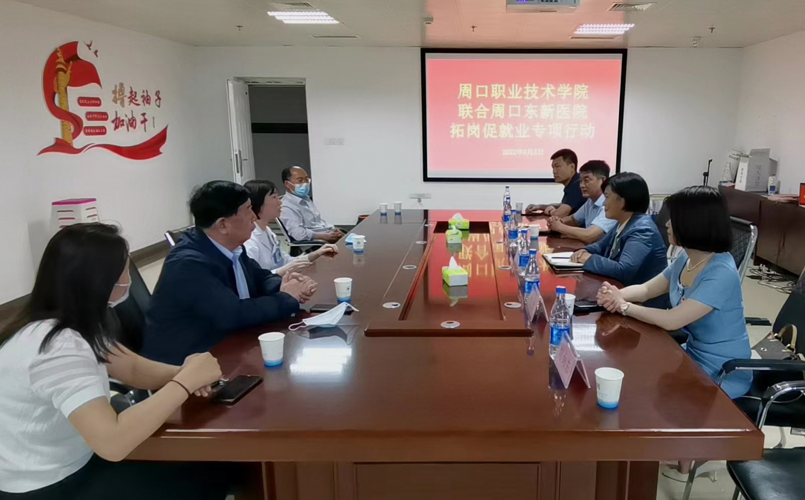 为贯彻落实教育部“书记校长访企拓岗促就业专项行动”工作部署和要求,建立“协同育人”机制,推动毕业生高质量就业,2022年5月3日下午,谈球吧平台app入口党总支书记于爱霞、院长付晓东率队赴周口东新区人民医院开展走访调研,与用人单位就2022届毕业生就业、人才培养、企业需求和就业合作等方面进行了座谈交流。周口东新区人民医院院长王淑华等相关人员陪同参加。
