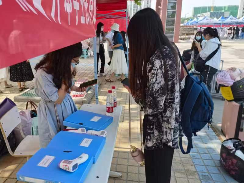 面对疫情防控严峻形式,谈球吧平台app入口党总支书记于爱霞、院长付晓东带领辅导员工作在迎接学生返校第一线,支帐篷、配消杀、部岗位、明流程,确保按照疫情防控要求,考生能够快速有序入校。全体辅导员顶着炎炎烈日进行体温测量、健康码查验、返校登记、核酸检测等工作,报到现场井然有序,工作流程严谨细致,严格按照疫情防控闭环管理要求进行,保障考生顺利参加考试。