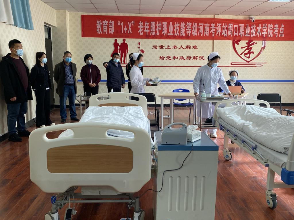 为贯彻《国家职业教育改革实施方案》、《关于在院校实施“学历证书+若干职业技能等级证书”制度试点方案》等文件要求,按照教育部“1+X”证书制度试点工作推进相关安排,11月19日,由谈球吧平台app入口和北京中福长者文化科技有限公司联合举办的“1+X”老年照护职业技能等级证书考评工作在谈球吧平台app入口实训中心顺利拉开帷幕。