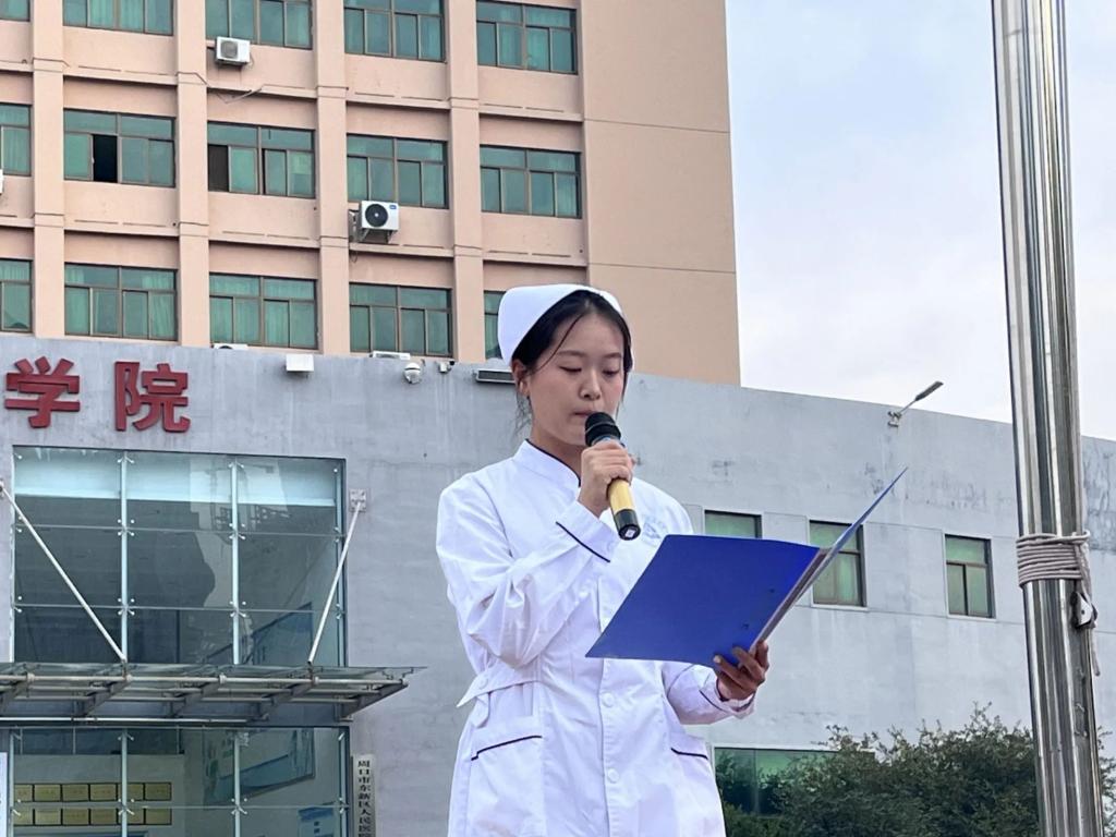 22级护理6班刘钰芃同学作为学生代表发言,她首先对23级各位学弟学妹的到来表示热烈的欢迎,随后提出以下三点建议:一、确定大学时期的目标,保持积极向上的心态和不断进取的精神,努力成就一个更好的自己。二、找到正确的学习方法,高效学习专业知识,为将来护理工作打下坚实的基础。三、相信自己的无穷潜能,不断挑战自己、激励自己,让自己的大学生活变得更加丰富多彩。