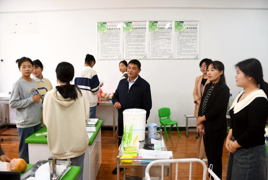 随后,谈球吧平台app入口党总支书记张华珍、院长付晓东一行到实训室慰问备赛“全国职业院校托育技能竞赛”师生并亲切交流,询问大家备赛的近况,勉励大家在争创佳绩的同时,劳逸结合,欢度双节。