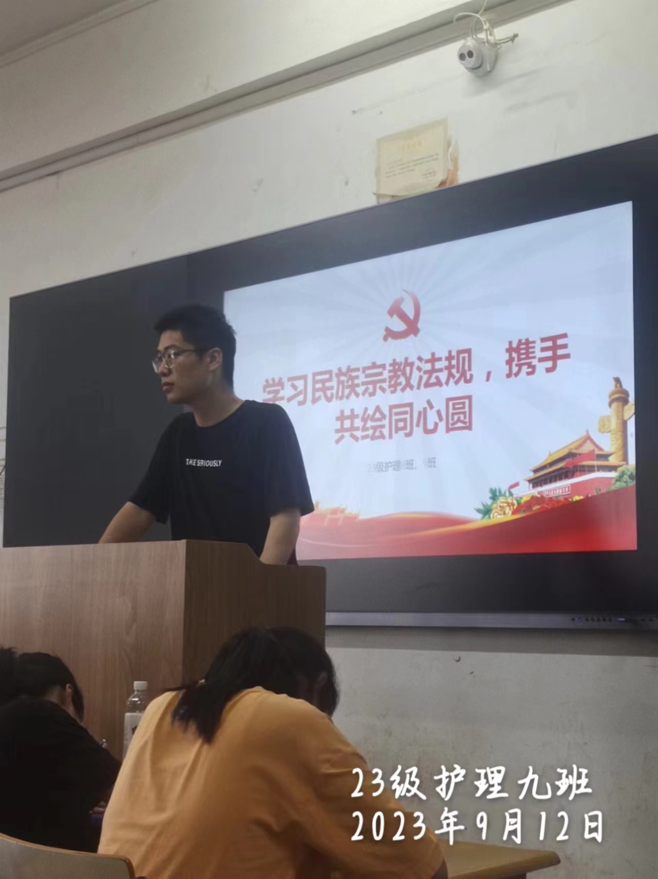 主题班会上,辅导员们分别从“宗教基本知识”、“民族政策”、“党的宗教和国家相关法律法规”、“反邪教”等方面进行宣讲,认真学习习近平总书记关于宗教工作的重要讲话及论述,引导学生自觉把思想和行动统一到习近平总书记重要讲话精神上来,树立正确的宗教观,认清邪教的本质,坚定理想信念,严格遵守国家法律法规和学校规章制度,增强“四个意识”,坚定“四个自信”,做到“两个维护”,不断在青春的赛道上奋勇争先、建功立业。