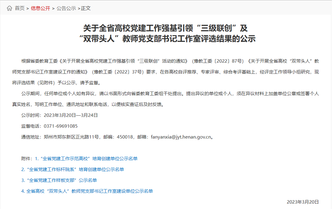 近日,河南省委教育工委公布了全省高校党建工作强基引领”三级联创“评选结果,谈球吧平台app入口党总支获评“全省党建工作标杆院系”培育创建单位。
